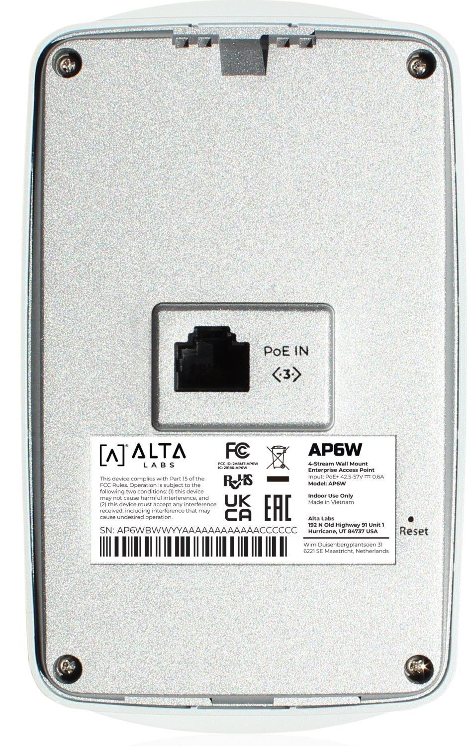 Popis Alta Labs AP6W Wi-Fi 6, Wall mount enterprise Access Point