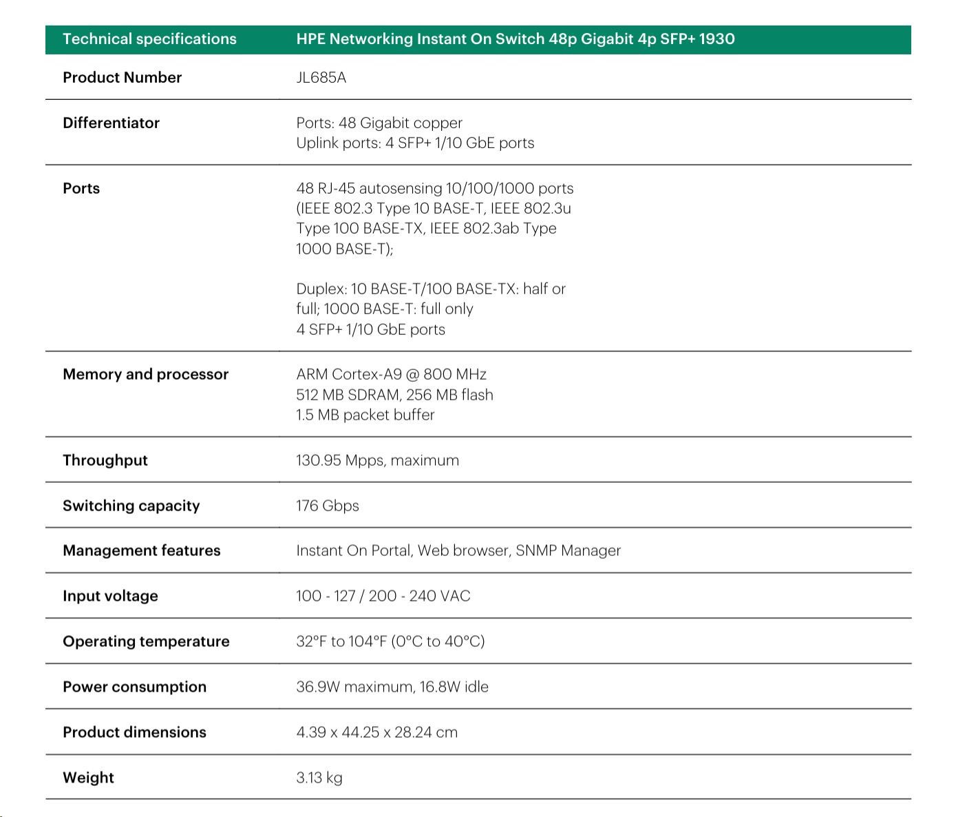HPE Networking Instant On Switch 48p Gigabit 4p SFP+ 1930 (JL685A)