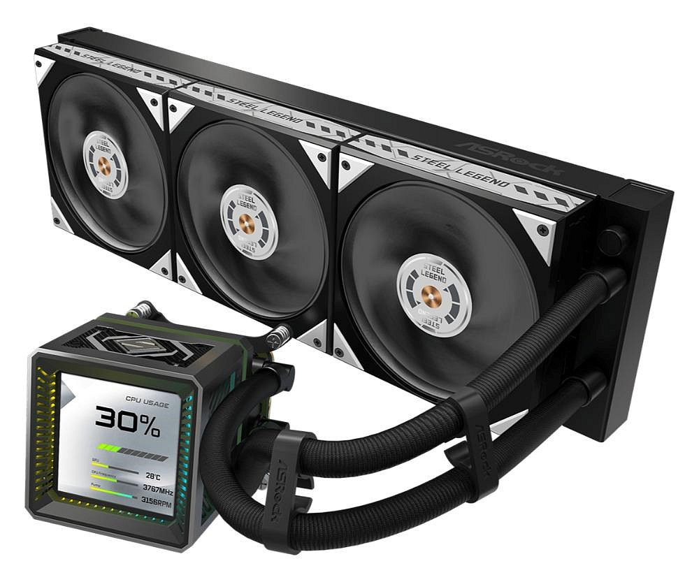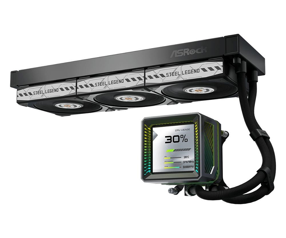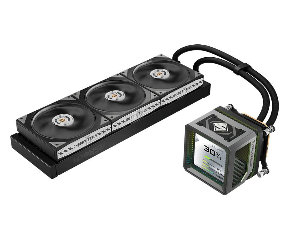 Vysoce výkonné AIO chlazení s 360mm radiátorem a integrovaným 3" LCD displejem pro monitoring systému nebo vlastní grafiku. Je osazeno prémiovými ventilátory s LCP lopatkami a průmyslovými kuličkovými ložisky pro maximální tlak a životnost. Kombinuje robustní konstrukci řady Steel Legend s tichým 3fázovým čerpadlem a plnou podporou nejnovějších socketů Intel i AMD.