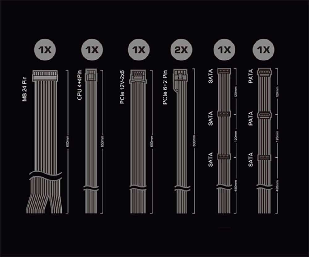 | ATX 20+4pin Konektor | 1x / 1x (600 mm) |