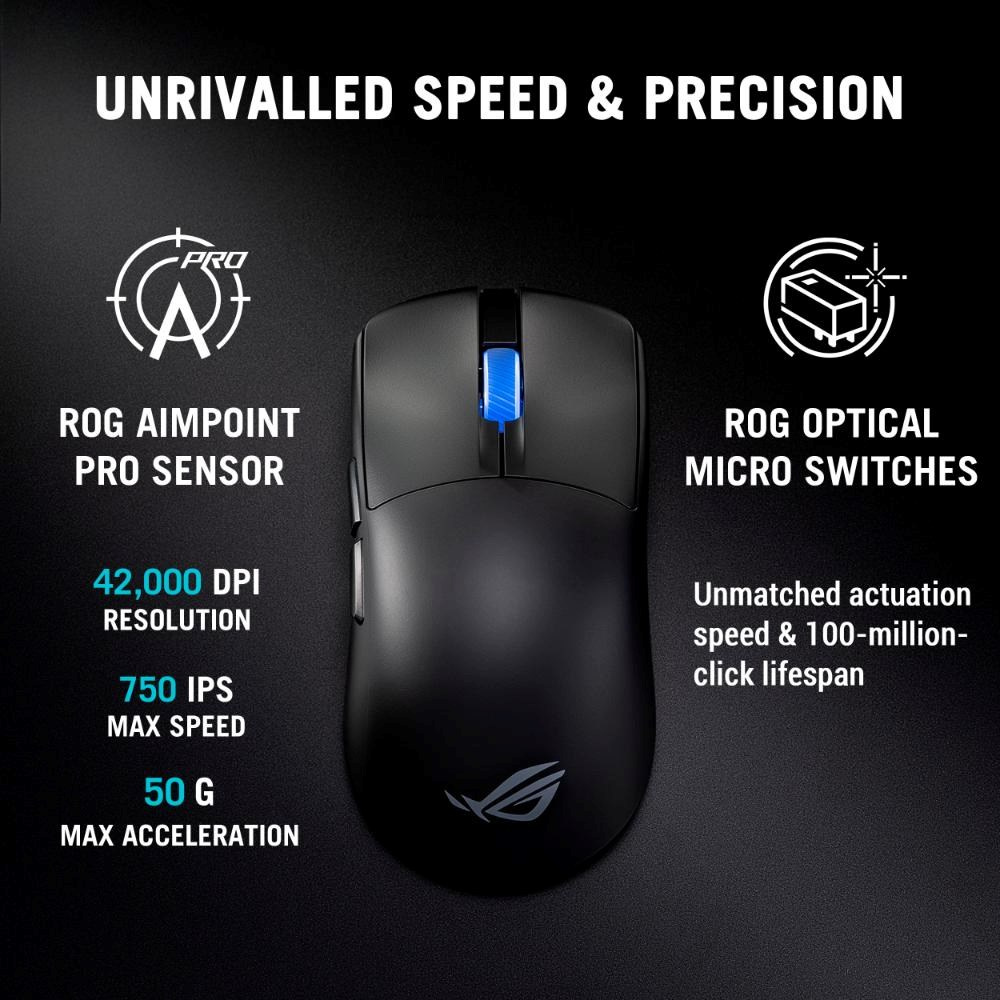 ROG Harpe II Ace je ultrajemná 48g polosymetrická herná myš, ktorej tvar bol vyvinutý s pomocou profesionálov v oblasti esportu. Je vybavená radou profesionálne schválených technológií, vrátane optického senzora ROG AimPoint Pro s rozlíšením 42 000 dpi, optických mikrospínačov ROG a špičkového bezdrôtového výkonu s frekvenciou 8 000 Hz a bezdrôtovou technológiou SpeedNova 8K.