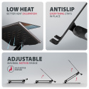 Výřezy v podstavci zajišťují optimální odvod tepla z vašeho notebooku, čímž zvyšují jeho výkon a životnost. Díky promyšlené konstrukci můžete snadno upravit úhel náklonu, a to i s právě používaným zařízením, pro maximální pohodlí a efektivitu při práci.