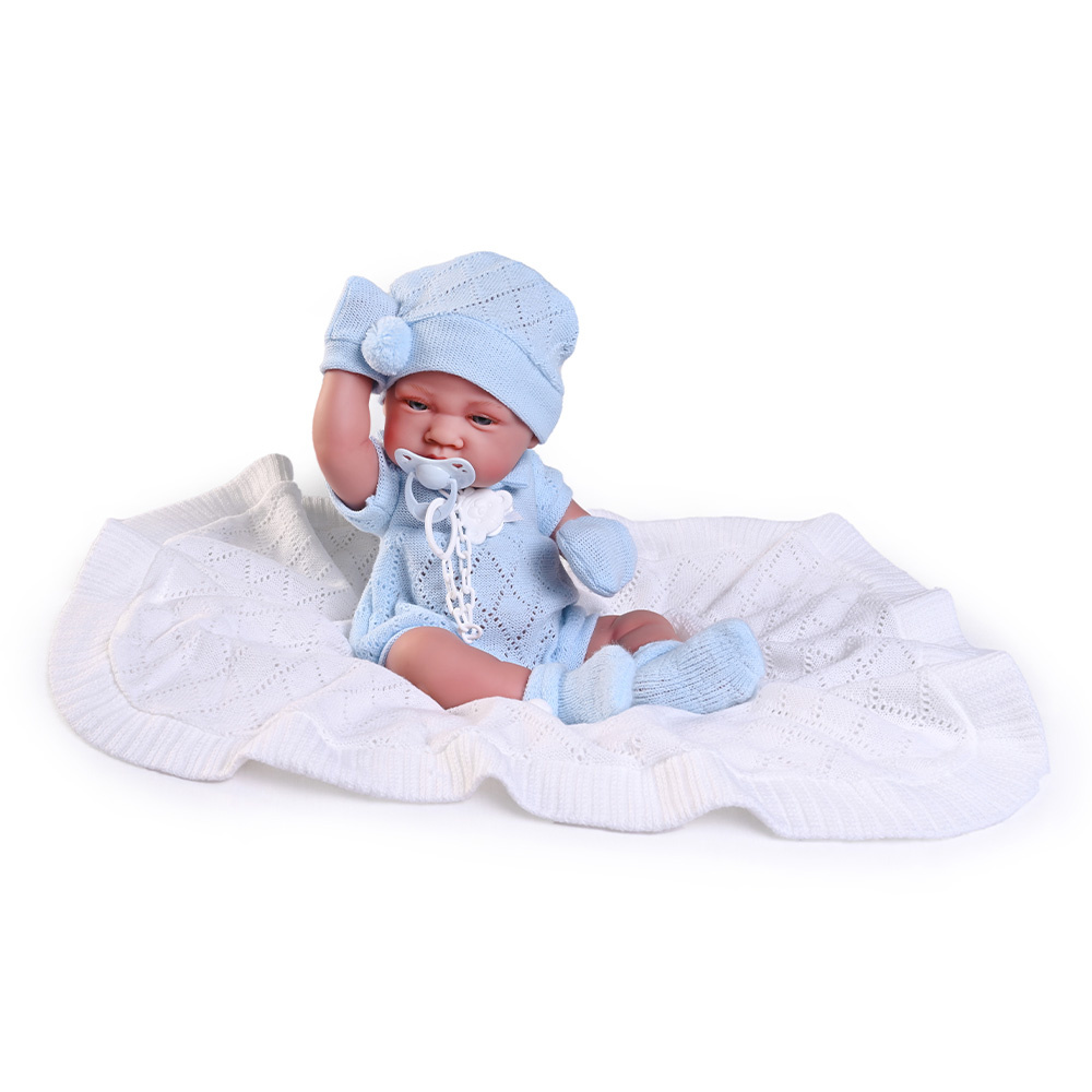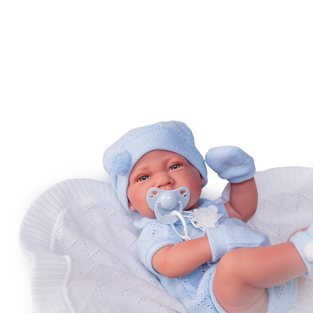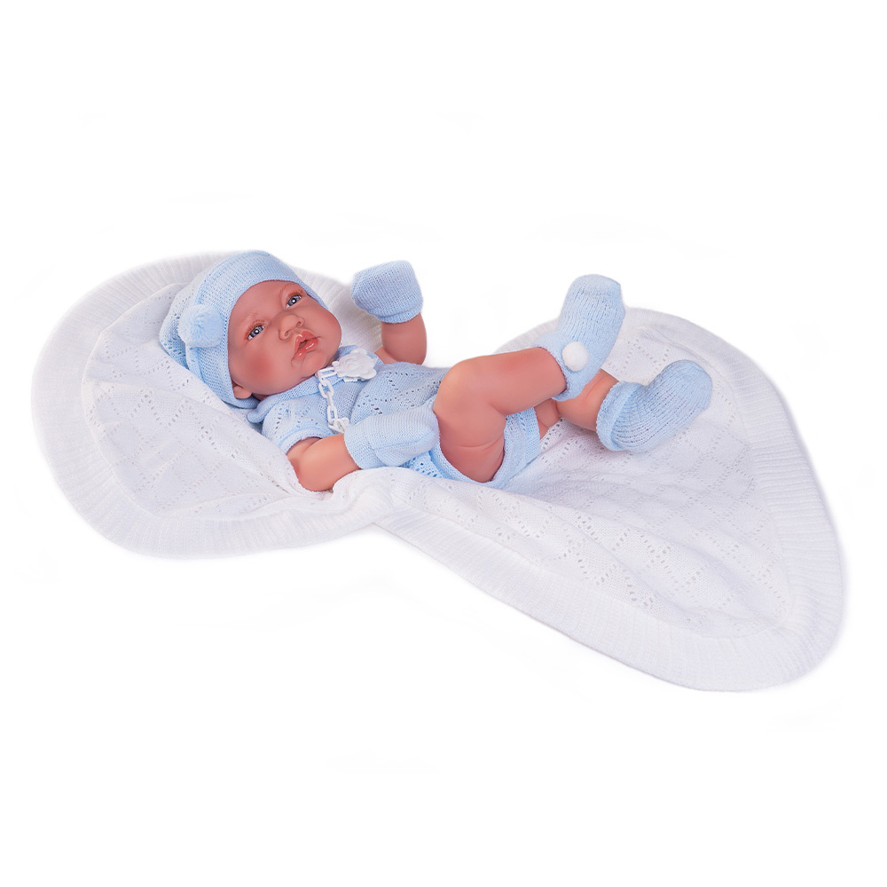 Novorodený Lúi je oblečený v krásnom, modrom úplete.