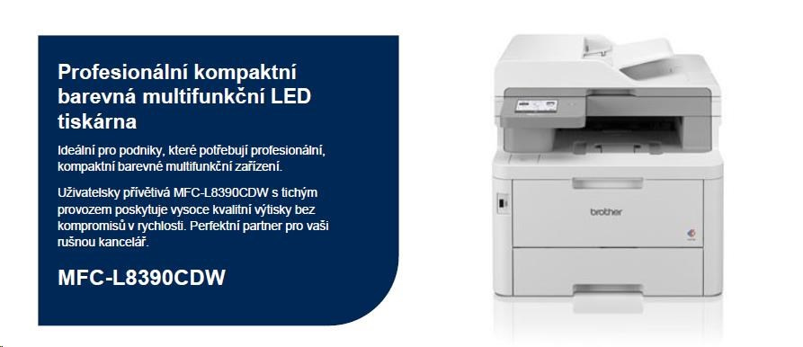 BAZAR - BROTHER multifunkce color LED MFC-L8390CDW - A4 30ppm DUALSKEN 512MB 250listů USB WIFI LAN ADF50 duplex - Poškoz