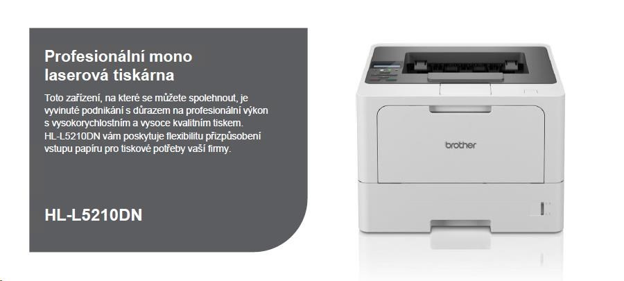 BAZAR - BROTHER tiskárna laserová mono HL-L5215DN - A4 48ppm 1200x1200 256MB 250list LAN USB DUPLEX - Poškozený obal (Ko