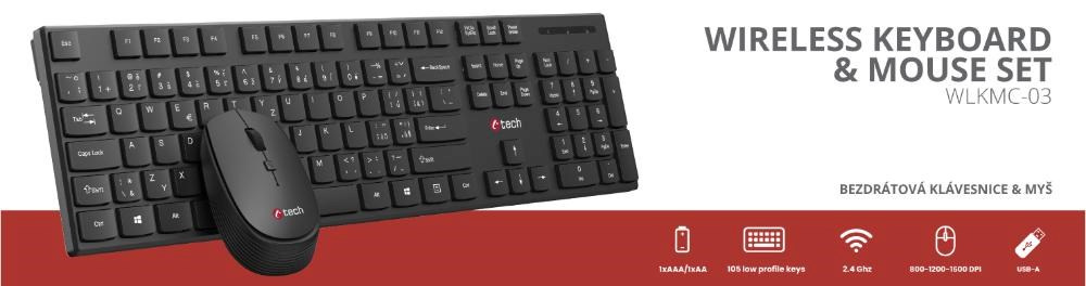 Bezdrôtový set klávesnice a myši C-TECH WLKMC-03 prináša pohodlie a slobodu pohybu bez rušivých káblov. Vďaka spoľahlivej 2,4GHz bezdrôtovej technológii získate stabilné a rýchle pripojenie s dosahom až 10 metrov, čo zabezpečuje plynulú prácu bez výpadkov. Stačí pripojiť kompaktný USB-A prijímač do portu vášho počítača a môžete ihneď začať pracovať – nie je potrebná žiadna zložitá inštalácia vďaka technológii Plug & Play.