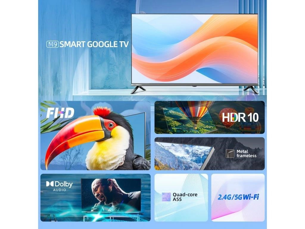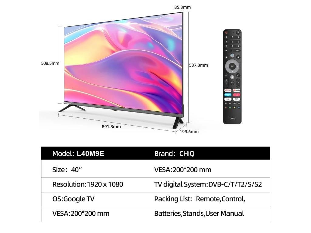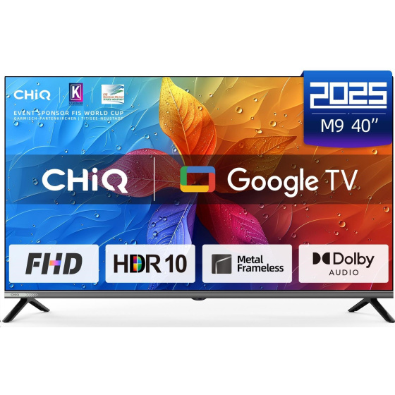 CHiQ 40“ L40M9E, kovová bezrámečková Smart Google TV s HDR10, HLG, obrazovkou s Full HD s rozlíšením 1920 x 1080 pixelov, Dolby Audio a vylepšeným zvukom dbx-tv.