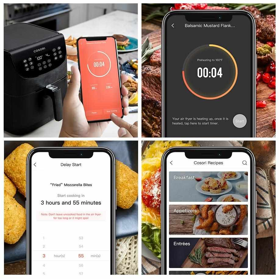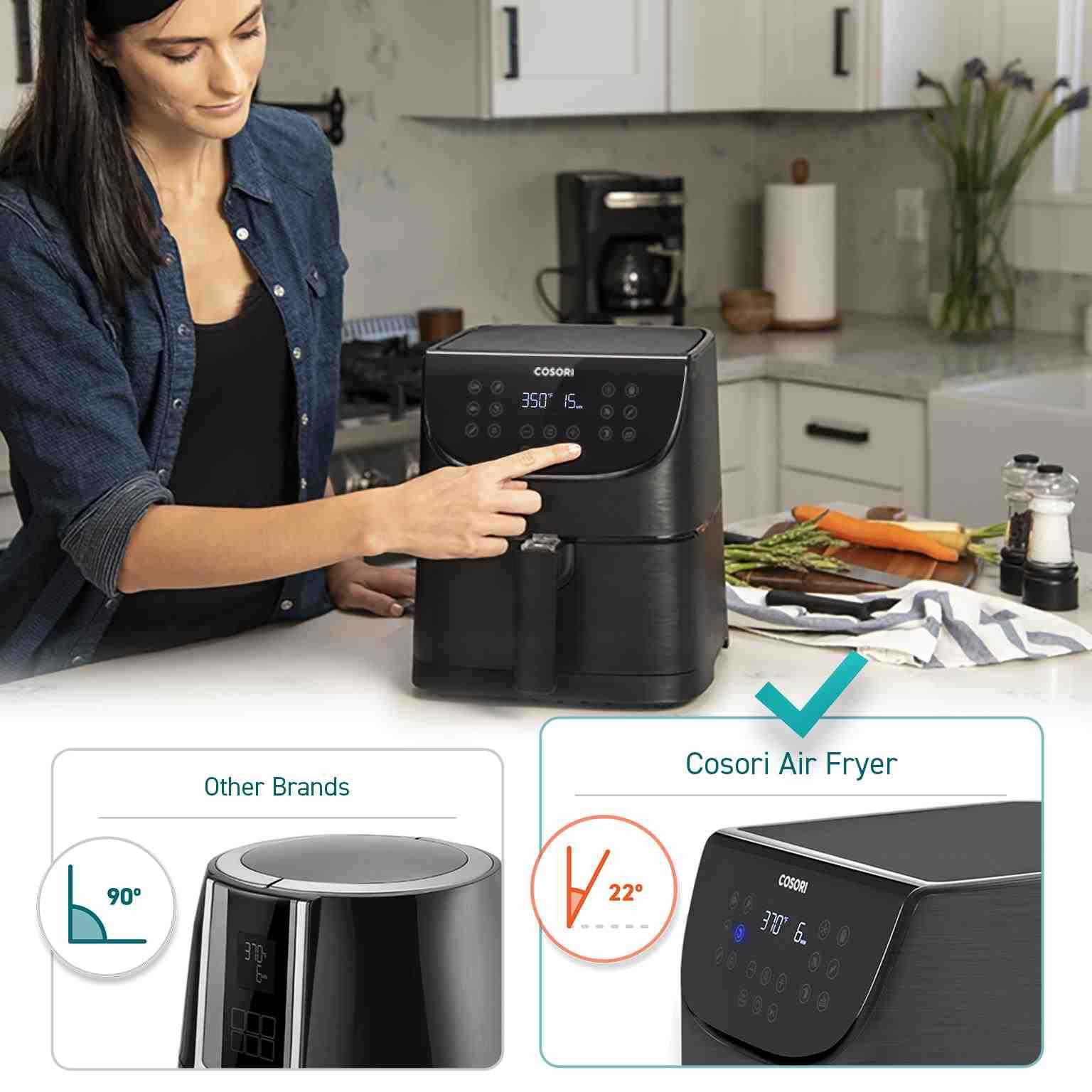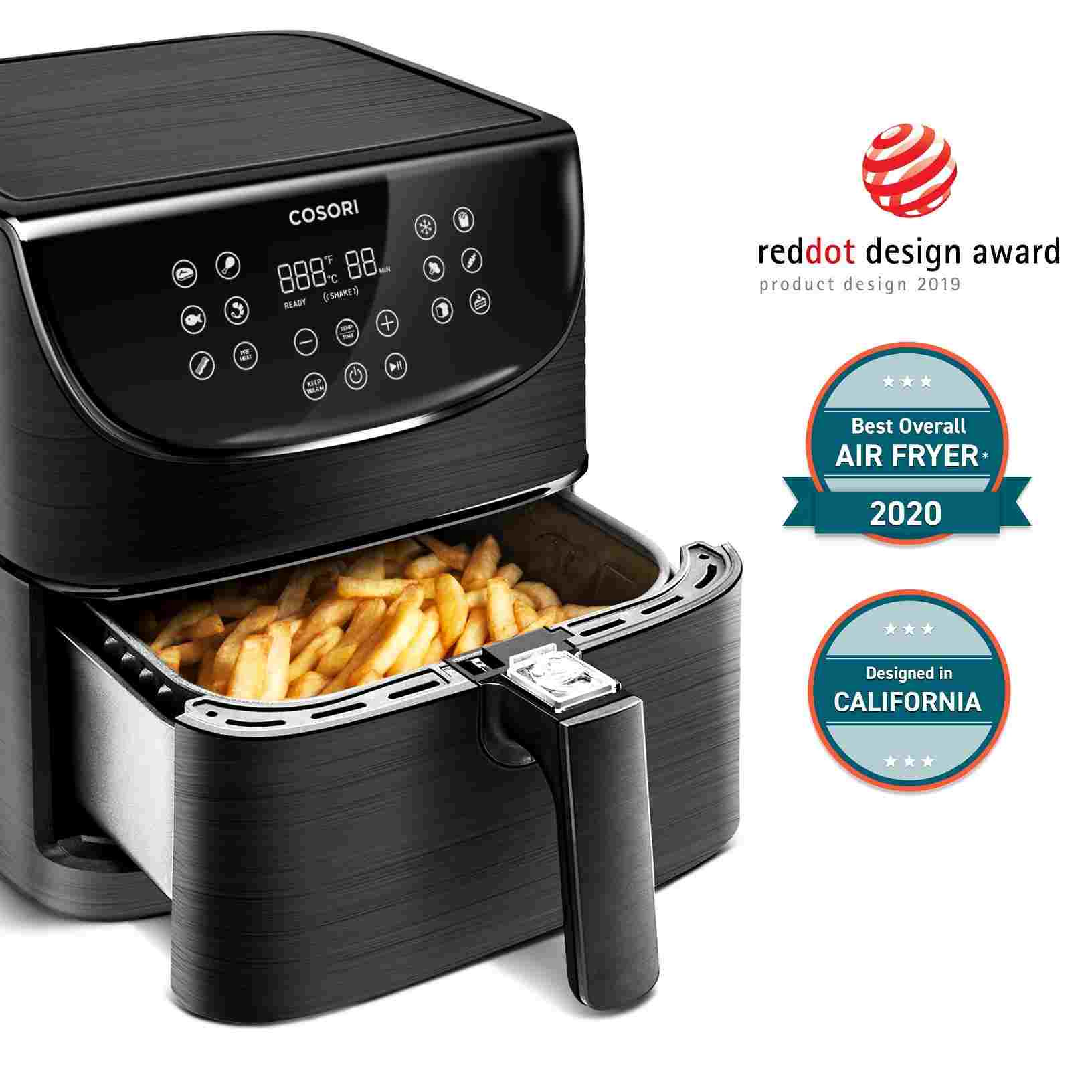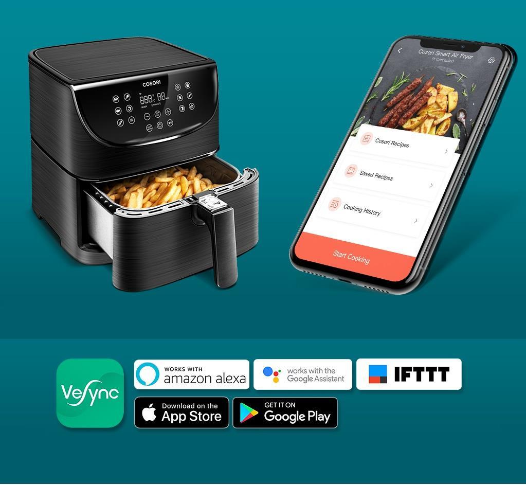 Teplovzdušná fritéza COSORI CP158-AF má 6l varný priestor a 5,5l kôš s praktickým štvorcovým tvarom, vďaka čomu uspokojí aj početnejšie domácnosti. S výkonom 1700 W je fritéza extrémne výkonná, čo skracuje dobu varenia a šetrí tak elektrickú energiu. Vďaka veľkosti varného priestoru fritézy je možné pripraviť napríklad aj celé 3kg kura v kuse, ktoré by sa do fritézy s kruhovým košom alebo objemom 3-4l zmestilo len veľmi ťažko.