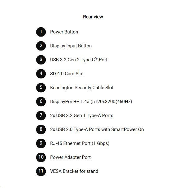 USB 3.2 Gen 1, USB 3.2 Gen 2, DisplayPort, Jack 3,5 mm výstup, LAN (RJ-45), SD karta