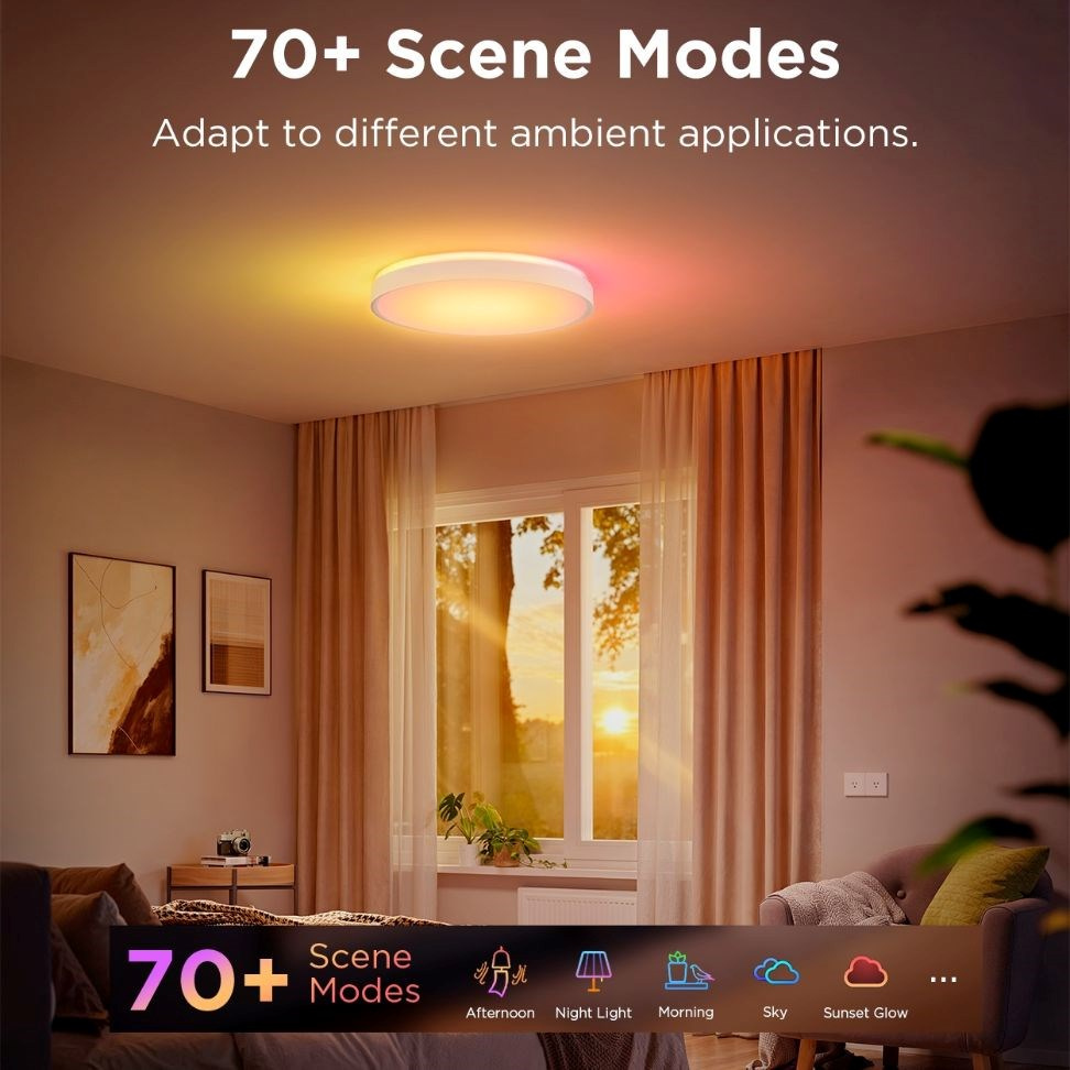 Ak hľadáte inteligentné stropné svietidlo, ktoré dokáže viac než len svietiť, Govee je skvelou voľbou. Toto elegantné duálne svetlo kombinuje technológiu RGBIC s bielymi LED diódami a ponúka živé farebné podsvietenie, ako aj nastaviteľnú bielu farbu v rozsahu od teplej 2700 K do studenej 6500 K. Vďaka viac ako 70 prednastaveným scénam a funkcii synchronizácie s hudbou sa ľahko prispôsobí vašej nálade a príležitosti – či už organizujete večierok, alebo chcete relaxovať. Ovládanie je jednoduché prostredníctvom aplikácie Govee Home alebo hlasom cez Alexu a Google Assistant a svetlo funguje aj s protokolom Matter, takže ho môžete zapojiť do HomeKit alebo Samsung Smart Things. Funkcia DreamView navyše umožňuje synchronizáciu s ďalšími svetlami Govee pre zjednotenie osvetlenia v celom priestore. S jasom až 4300 lúmenov a plynulým stmievaním je toto svietidlo ideálnou voľbou pre modernú domácnosť.