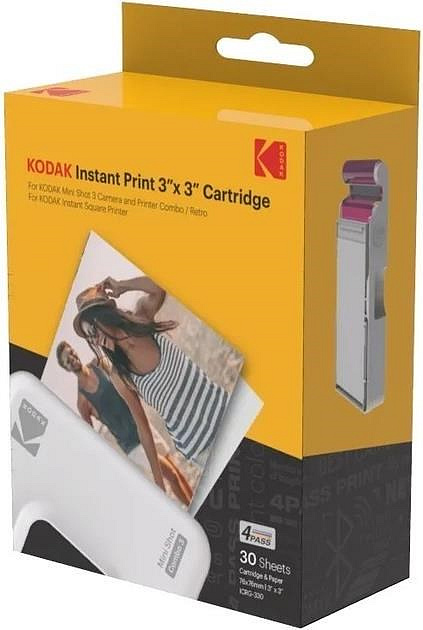 Kazeta KODAK 4PASS All-in-One Cartridge ICRG-360 je kompatibilná s tlačiarňami KODAK Mini 3 a Mini Shot 3. Každé balenie obsahuje 1 krabičku s 3 kazetami, čo vystačí na tlač celkom 30 fotografií.