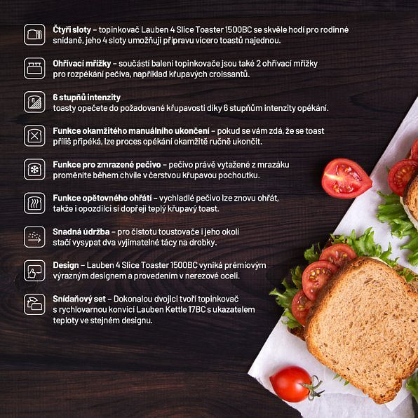 Lauben 4 Slice Toaster 1500BC Pro dokonalou rodinou snídani Zpříjemněte si zprečítajte si viac