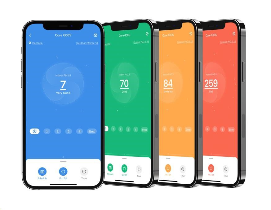 Chytrou čističku vzduchu Levoit Core 600S Smart můžete ovládat přímo na displeji nebo také přes aplikaci určenou pro smartphony a tablety Android a Apple. V aplikaci si můžete nastavit různé režimy, výkon, sledovat proces čištění, úroveň znečištění vzduchu nebo stav, v jakém se filtr nachází. Přes Amazon Alexa nebo Google Assistant můžete také zařadit čističku do svého Smart Home a dávat jí pokyny hlasem.