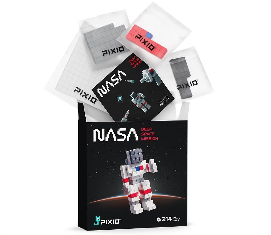 Stavebnica PIXIO 31101 NASA Deep Space Mission (Vesmírna misia) obsahuje 214 kociek PIXIO v 5 farbách. Umožnia oživiť vaše kreatívne nápady a prinesú farebnú radosť do života. Začnite stavbou jednoduchých modelov podľa pokynov a potom, až budete pripravení, prejdite k vytváraniu vlastných návrhov. S touto sadou si môžete postaviť astronauta, lunárny rover, raketu, satelit, teleskop a mnoho ďalších. Pixio je splnený sen fanúšikov Pixel Artu, hráčov Minecraftu a všetkých, ktorí sa radi hrajú. Použite ho ako učebný zdroj na rozvoj detskej kreativity. Obsahuje 5 farieb, ktoré vám pomôžu premeniť jednoduché tvary na skvelé objekty a postavy (biela 128x, sivá 46x, čierna 20x, červená 19x, modrá 1x).