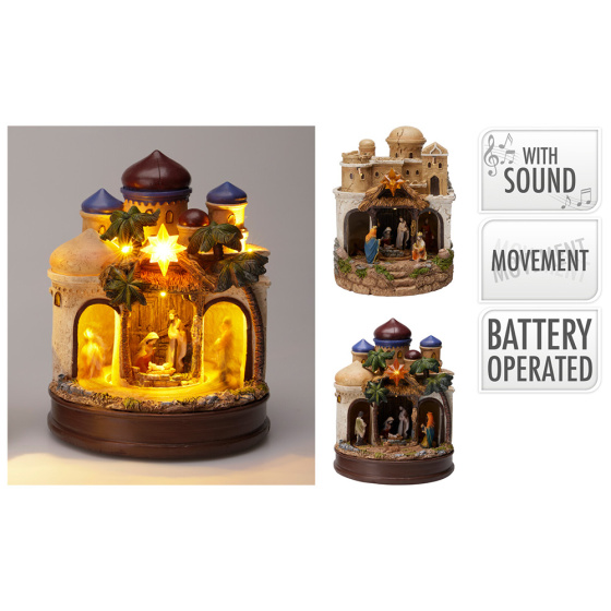 Betlehem s otočnou scénou, hudbou, LED osvetlením (2 rôzne dizajny).