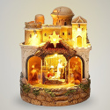 Figúrky sa otáčajú okolo jasličiek v osvetlenej scéne Betlehema a pritom hrá pieseň Tichá noc. - rozmer cca: 177 x 176 x 220 mm