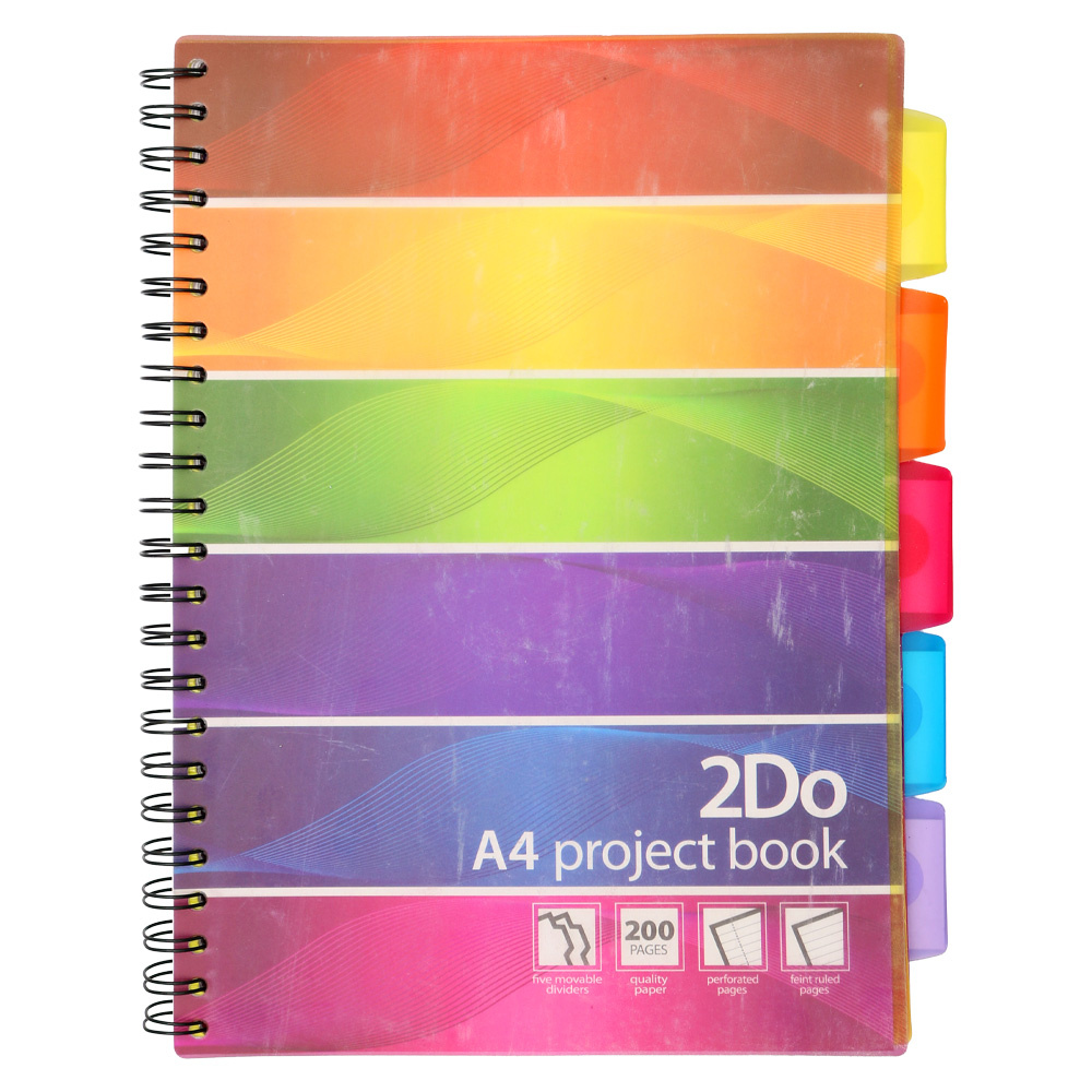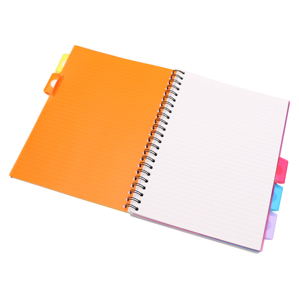 Špirálový blok linajkový A4 s piatimi pohyblivými rozraďovačmi; jednotlivé listy sú dierované a perforované. 100 listov, 80g/m2. Upozornenie! Tento produkt má poškodenú obálku - viď. foto. Ide len o povrchovú vadu na plastovej obálke bloku - vnútro je v poriadku.
