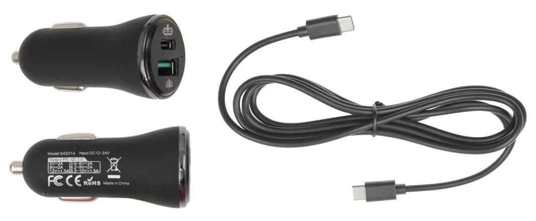 Cig-Plug Adapter, USB-A and USB-C interface, Quick Charger 3.0, 5V, 2.4A, incl.: USB-C to USB-C cabl