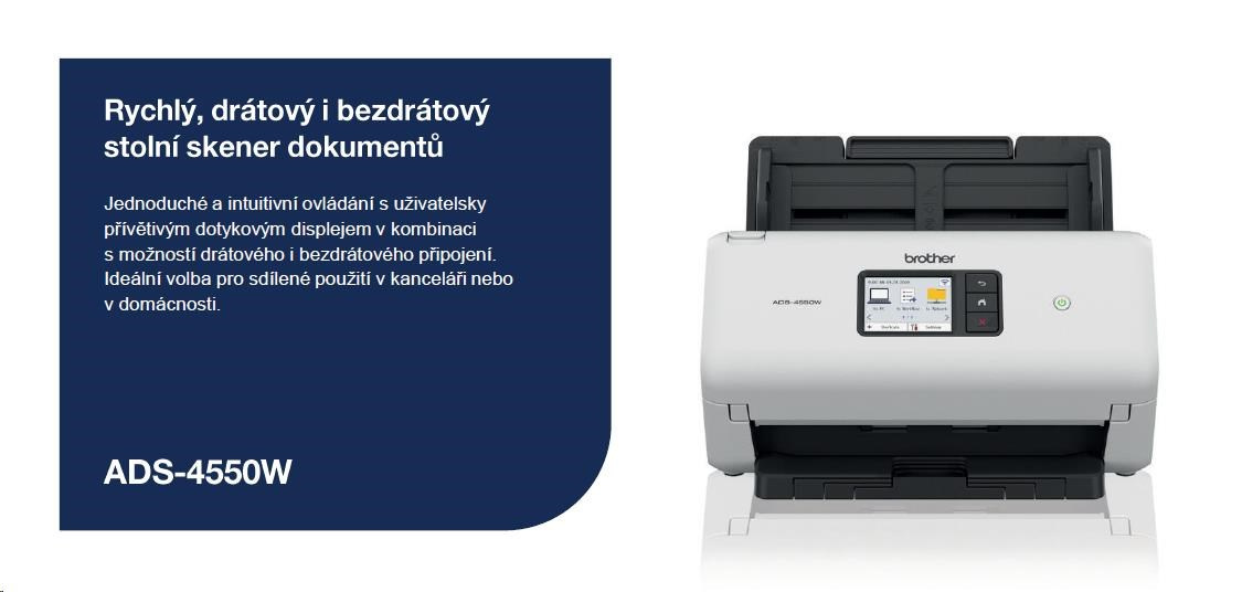 BROTHER skener ADS-4550W DUALSKEN A4 35ppm/70dual 600x600 60ADF USB LAN WIFI - display 7.1cm