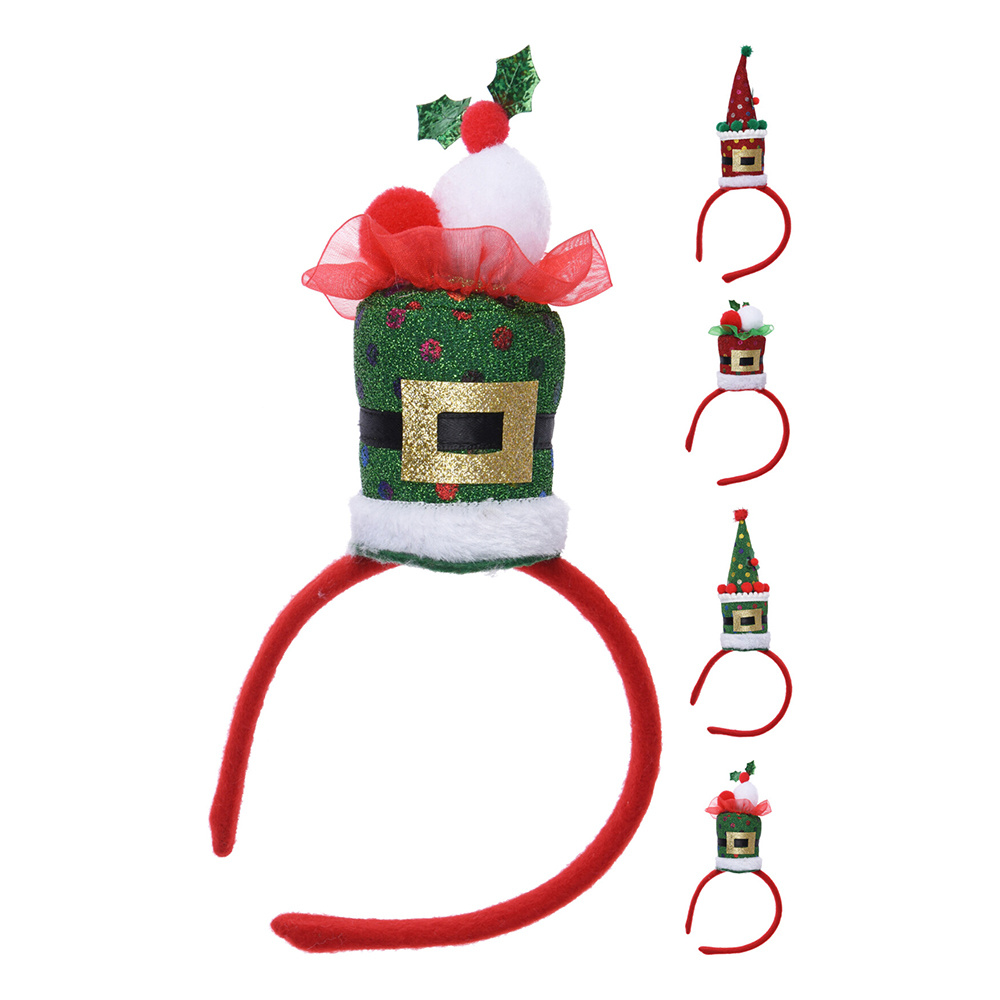 Vianočná čelenka s nazdobeným klobúkom.