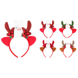 Čelenka - Vianočný sob s parohami zdobenými rolničkami a mašľou (mix 4 farieb)