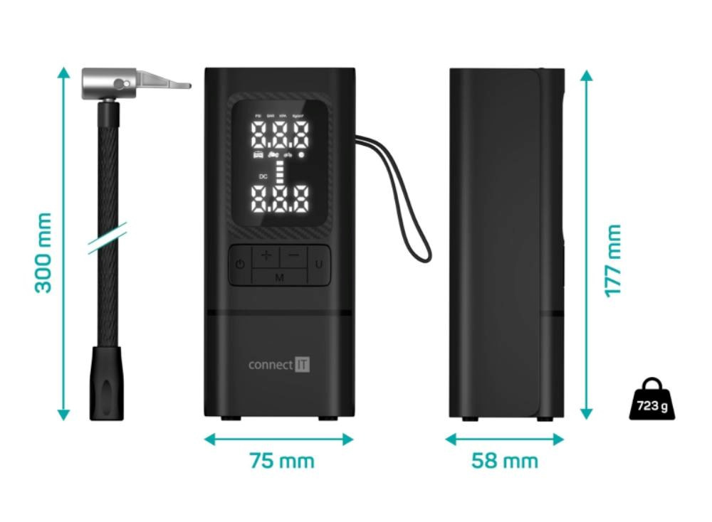 Popis CONNECT IT Přenosný kompresor a powerbanka AirFlow 2v1, 6000mAh, USB-C, Černá