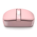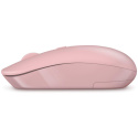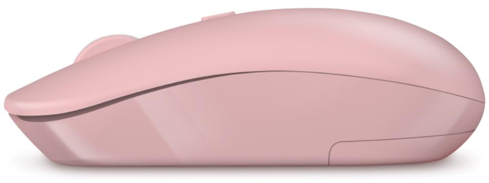 Bezdrátová klávesnice a optická myš v elegantním růžovém designu, určena pro domácí i profesionální použití v kancelářích a firmách.