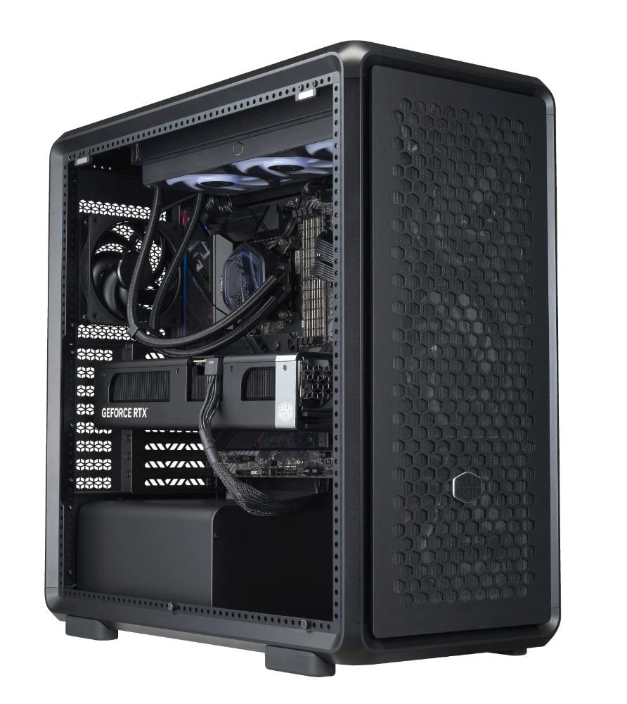 MasterFrame 600 je vlajkovou lodí řady skříní ATX s rozměry 544 x 531 x 261 mm. Nabízí všestranný, prostorný design, který podporuje standardní základní desky ATX, s dostatkem prostoru pro rozšíření, chlazení a efektivní správu kabelů.