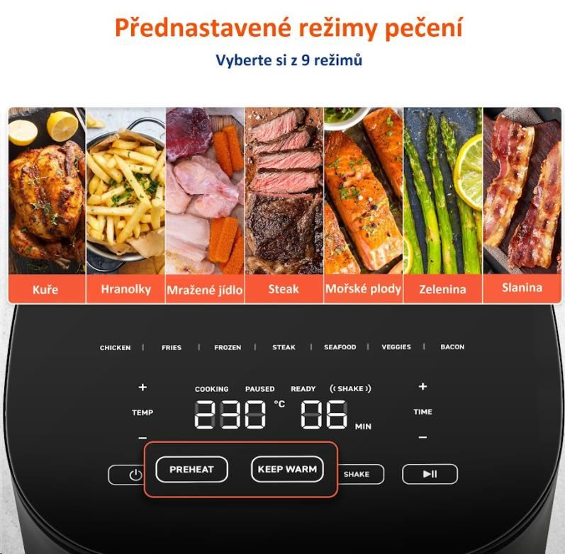 PREDHRIATIE - predhreje fritézu, čím urýchľuje prípravu jedla a udržuje ho svieži