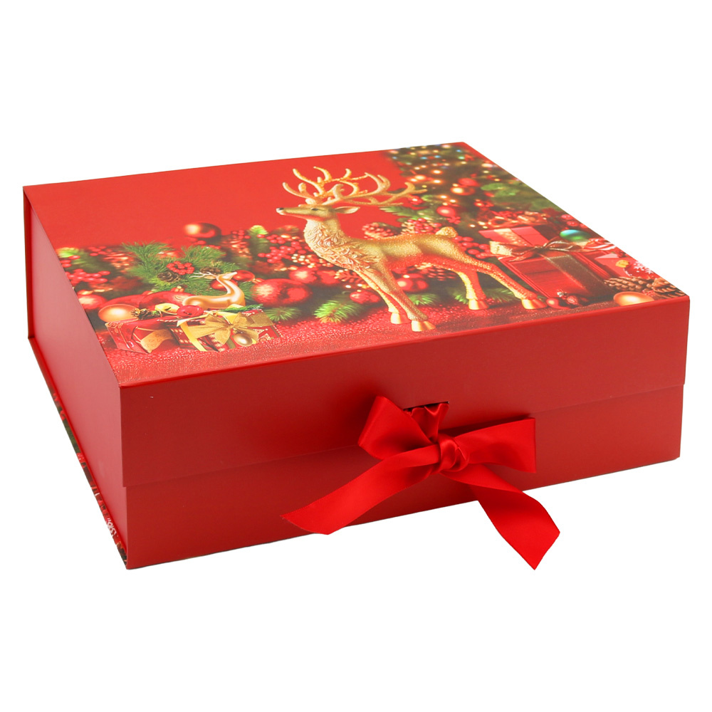Darčeková krabica s mašľou 33 x 25 x 12 cm - vianočný jeleň
