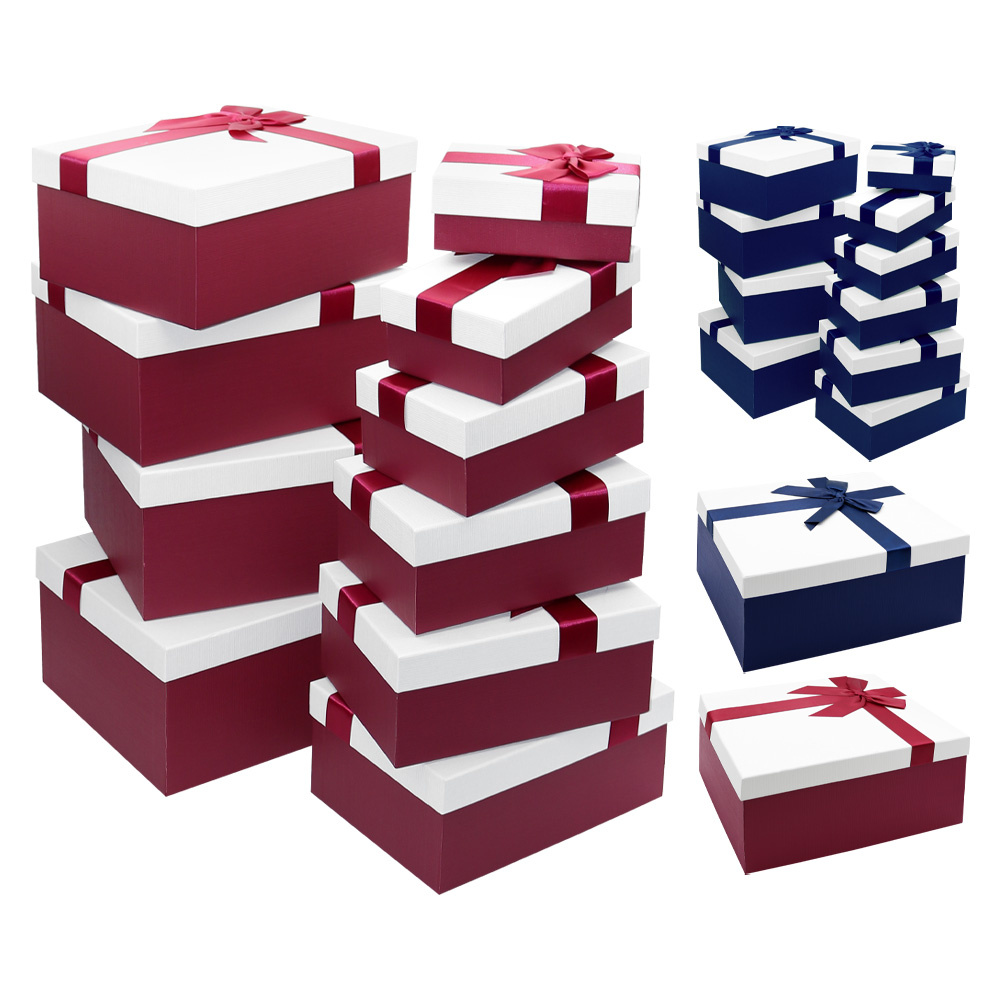 Luxusné darčekové krabice s farebnou stuhou /mašľou (tmavo-modrá alebo bordová) sada 10 ks.