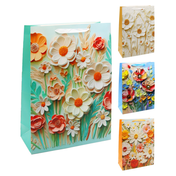 Popis Darčeková taška 2049 Kvety, veľkosť M 26 x 12 x 32 cm (mix 4 dizajnov)