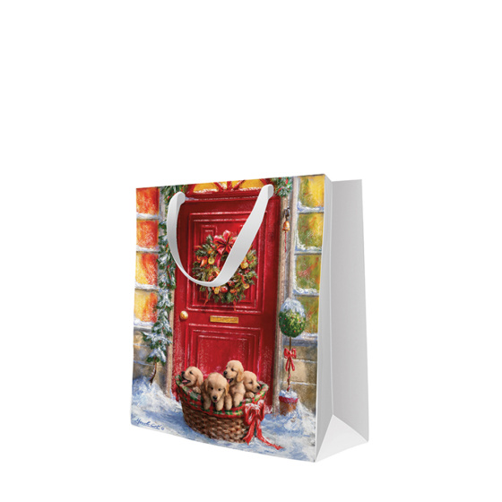Darčeková taška vianočná 20x10x25 cm Basket with puppies