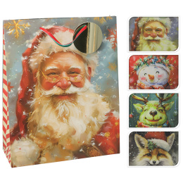 Vianočná darčeková taška s trblietavým vzorom na prednej strane v 4 motívoch strednej veľkosti.