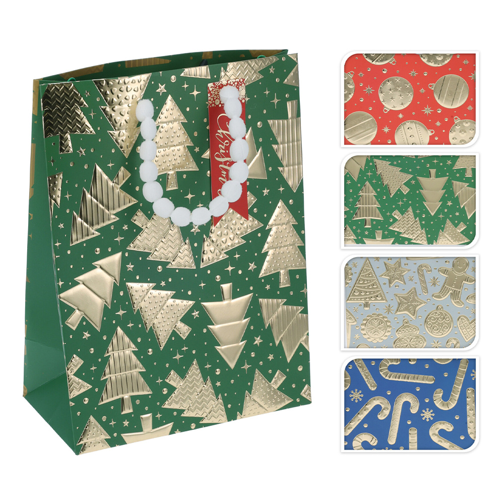 Vianočná darčeková taška v 4 tradičných motívoch strednej veľkosti.