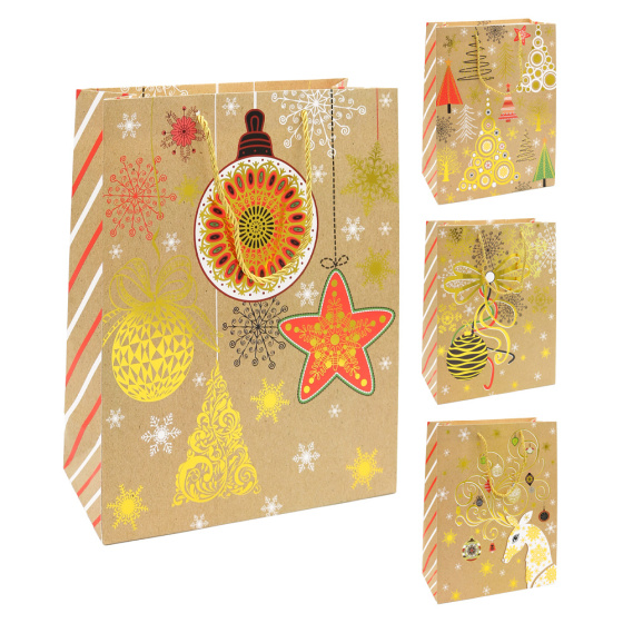 Popis Darčeková taška vianočná 26x10,5x32 cm (mix 4 dizajnov 9092 /cena za 1 ks)