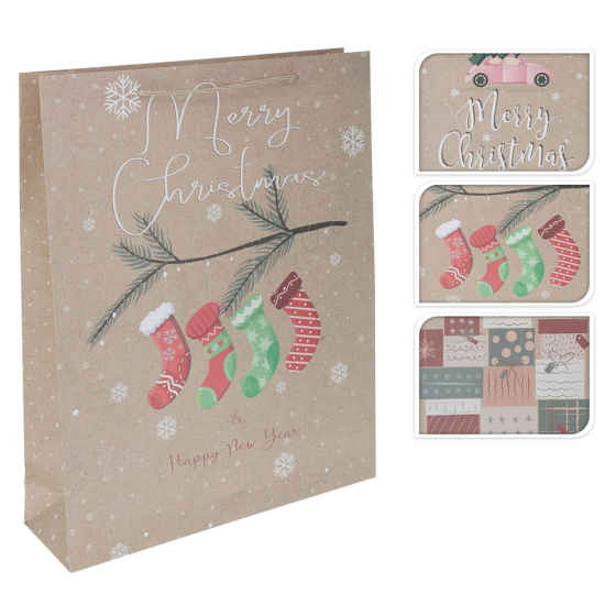 Vianočná darčeková taška v 3 tradičných motívoch - extra veľká.