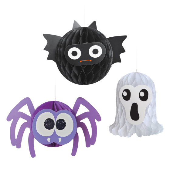 Dekorácia Halloween - Duch, Pavúk a Netopier s nitkou na zavesenie: