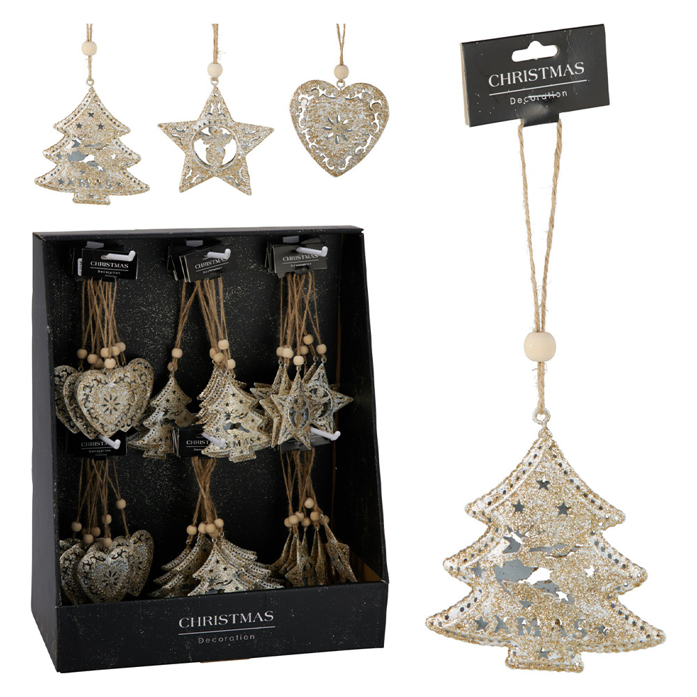 Dekorácia závesná - vianočné motívy 7,5 cm, champagne, mix /1ks