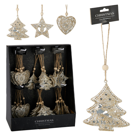 Trblietavá dekorácia s jutovou šnúrkou a korálkou na zavesenie.