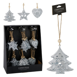 Dekorácia závesná - vianočné motívy 7,5 cm, strieborné, mix /1ks