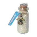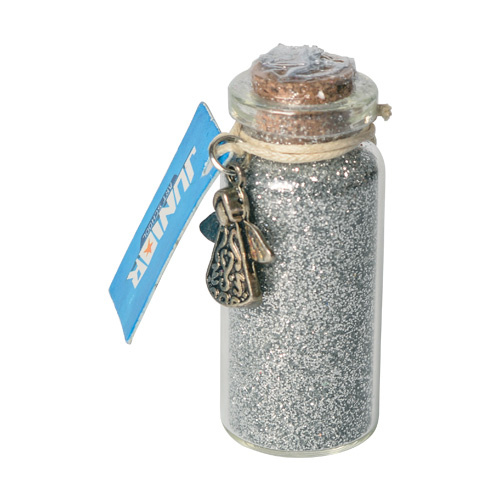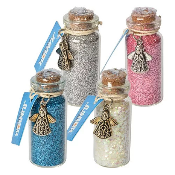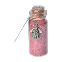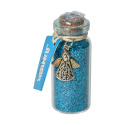 Glitter piesok / kolieska na kreatívne účely v sklenenej fľaštičke s kovovým príveskom anjelika.