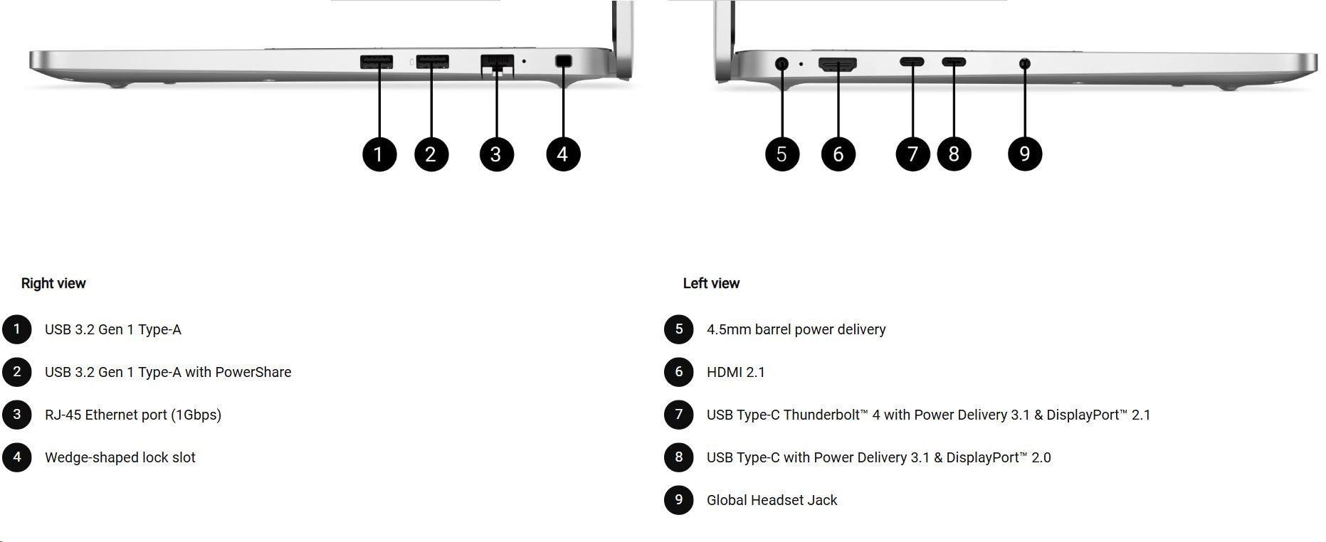 - USB Type-C Thunderbolt™ 4 with Power Delivery 3.1 & DisplayPort™ 2.1