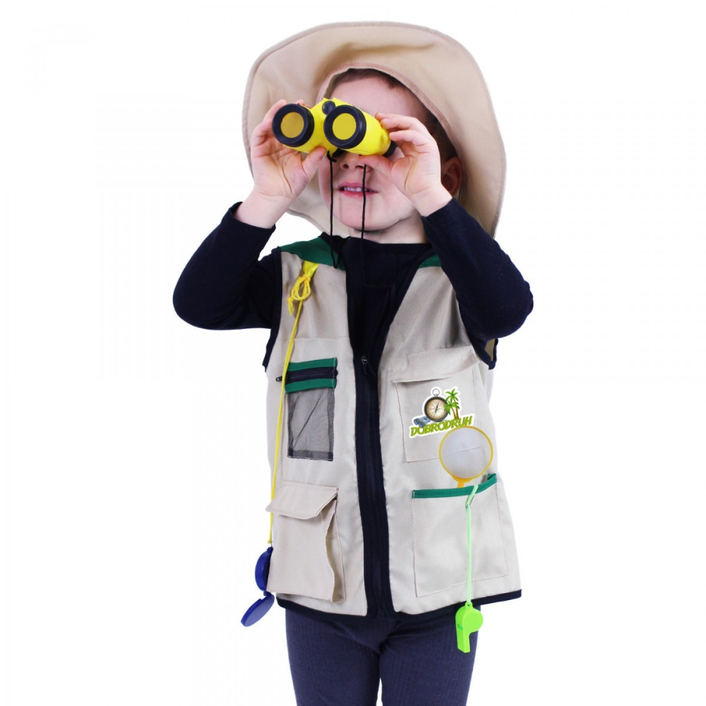 Vydaj sa na dobrodružnú výpravu s týmto parádnym vybavením! Karnevalový kostým v štýle malého dobrodruha je určený pre chlapčekov vo vekovom rozmedzí 3-7 rokov (104-134 cm). Balenie obsahuje vestu, klobúk (bez šnúrky), ďalekohľad, lupu, píšťalku a kompas.