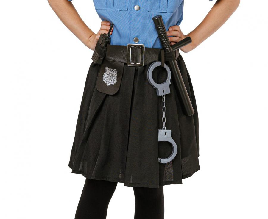 Kostým obsahuje: blúzka, sukňa, opasok, čiapka, putá, vysielačka, obušok.