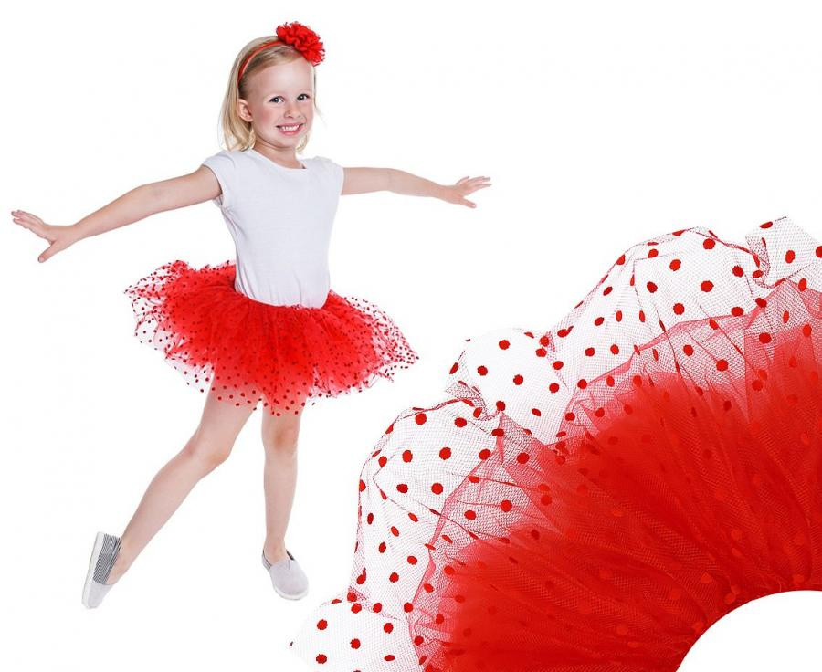 Karnevalová červená detská sukňa s bodkami pre dievčatá.