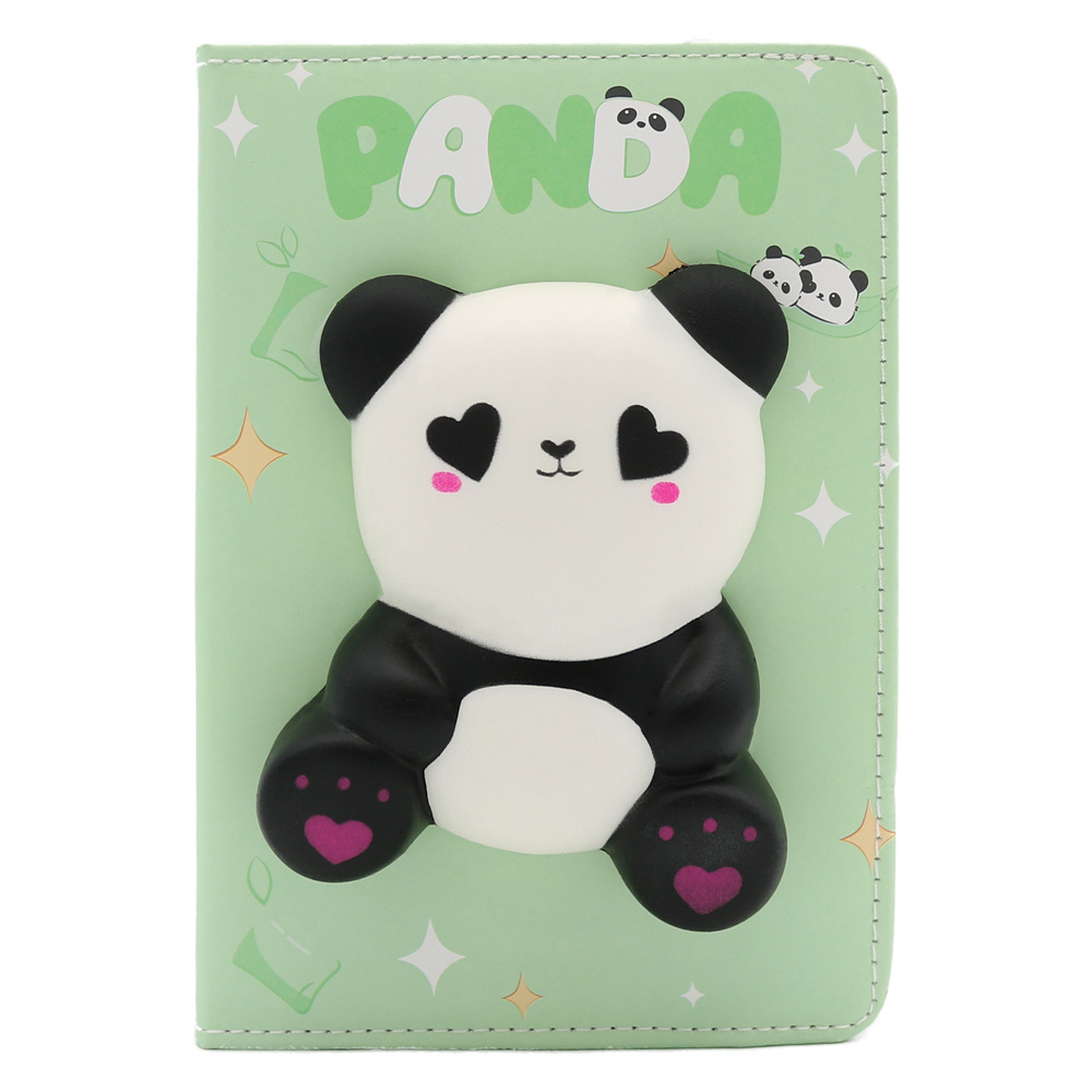 Detský zápisník s mäkkučkou PU obálkou a penovou pandou na titulnej strane.
