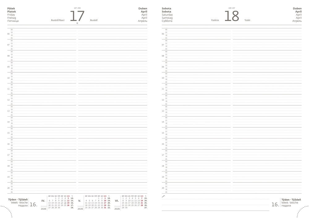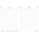 Matná koženka predstavuje kvalitný, na dotyk príjemný a zároveň veľmi obľúbený materiál. Hrúbka materiálu umožňuje dosiahnuť perfektné výsledky pri sleporazbe bez fólie. Diár obsahuje: osobné údaje, plánovač dovolenky (mesačný prehľad), plánovací kalendár, telefónne predvoľby, štátne sviatky Českej a Slovenskej republiky, medzinárodné sviatky, ročný výhľad, denný layout, adresár Formát diára: 210 x 297 mm Rozsah diára: 400 strán Kalendárium: denný