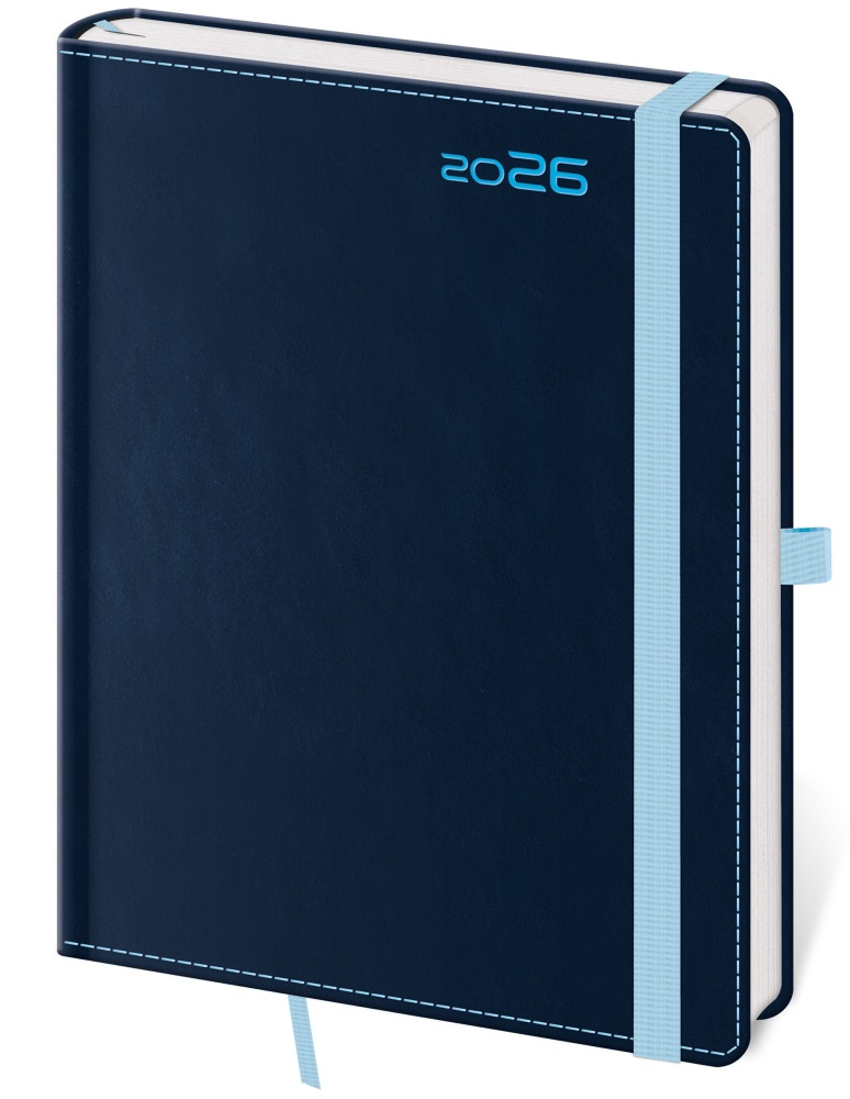 Popis Diár 2026 denný A5 Double Blue s putkom na pero