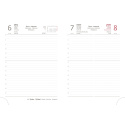 Matná koženka predstavuje kvalitný, na dotyk príjemný a zároveň veľmi obľúbený materiál. Hrúbka materiálu umožňuje dosiahnuť perfektné výsledky pri sleporazbe bez fólie. Diár obsahuje: osobné údaje, plánovač dovolenky (mesačný prehľad), plánovací kalendár, telefónne predvoľby, štátne sviatky Českej a Slovenskej republiky, medzinárodné sviatky, ročný výhľad, denný layout, adresár, mapa Európy a Českej a Slovenskej republiky Formát diára: 120 x 165 mm Rozsah diára: 336 strán Kalendárium: denný